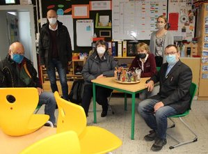 12.12.2020 Keine Frage, die Offene Ganztagsschule der Kinder der Grundschule Everswinkel platzt aus allen Nähten. Bereits jetzt sind über 70 Kinder dort untergebracht, weitere 50 Kinder nehmen das Betreuungsangebot von 8 bis 1 (8.00 -13.25 Uhr) in Anspruch und die Prognosen deuten darauf hin, dass die Zahlen in den nächsten Jahren noch weiter steigen werden. Somit ist klar, dass es auf ein größeres Raumangebot im Bereich der Grundschule hinauslaufen muss. Die Gemeindeverwaltung hat dafür bereits die Mittel ab 2021 im Haushaltsplan vorgesehen. Darum haben sich die Grünen auf Anregung von Jürgen Günther einmal vor Ort umgesehen. Die Leiterinnen Margret Füllenkemper und Lina Ostrowski führten die Delegation der Grünen durch die Räumlichkeiten und erklärten, dass schon länger weiterer Raumbedarf besteht, zumal sich bereits jetzt das Raumangebot auf drei Gebäudeteile der Grundschule verteilt; so muss zum Beispiel der Computerraum der Grundschule zur Hausaufgabenbetreuung genutzt werden. In einem anderen Raum neben einem Grundschul-Klassenraum müssen sich die Kinder während des Unterrichts außerst ruhig verhalten.